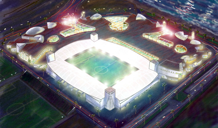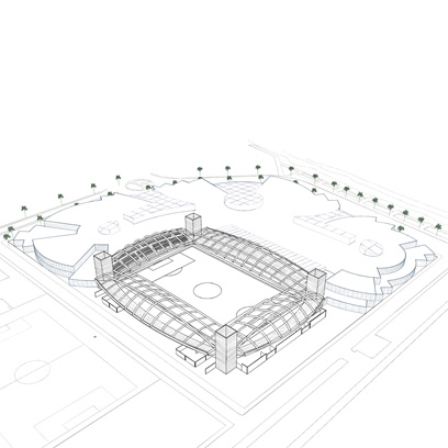En los terrenos del estadio de fútbol local, frente al Peñón