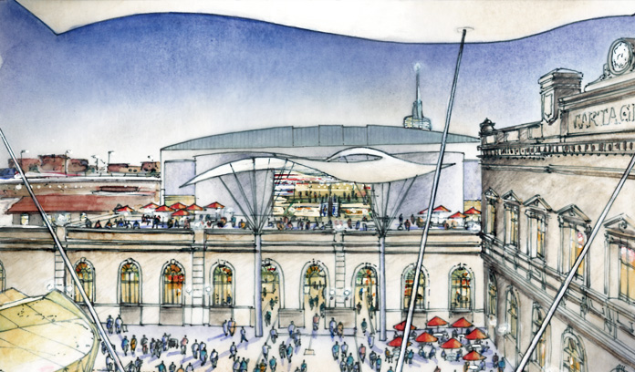 Los tres diseños tienen en común la implantación de un centro comercial en una estación de transporte ferroviario. Espacios comerciales intercalados de una manera amable con los itinerarios y lugares de estancia temporal de los viajeros, combinados con espacios de restauración y ocio en contenedores que adoptan las arquitecturas existentes en los nuevos recintos adaptándose al contexto con una nueva imagen de conjunto.