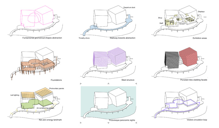 Este monumento es una alegoría a la forma plástica pura más allá de cualquier intención materialista, práctica, social o descriptiva. Se diseño como una abastracción de las formas geométricas básicas, los colores primarios y la composición dinámica.