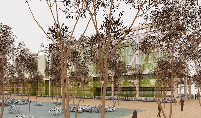 abierto en planta baja a modo de gran vestíbulo ajardinado.