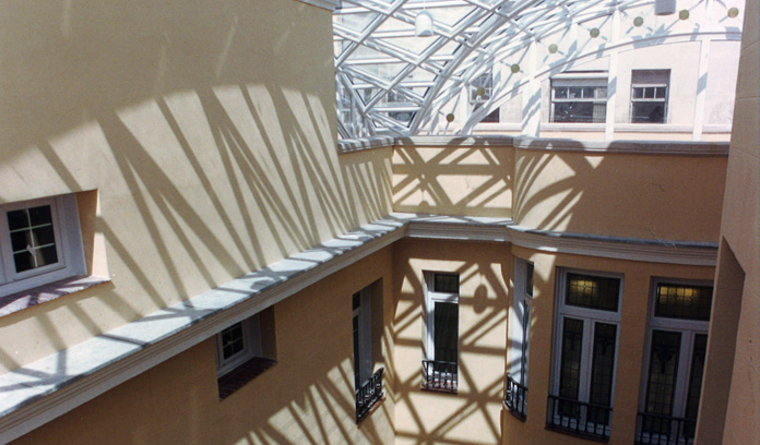 vidrio para cubrir el patio interior reconvertido en vestíbulo,