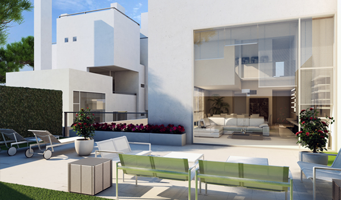 En este conjunto de viviendas unifamiliares se ha seguido una estrategia de diseño integral que engloba la arquitectura, el mobiliario y el paisajismo.