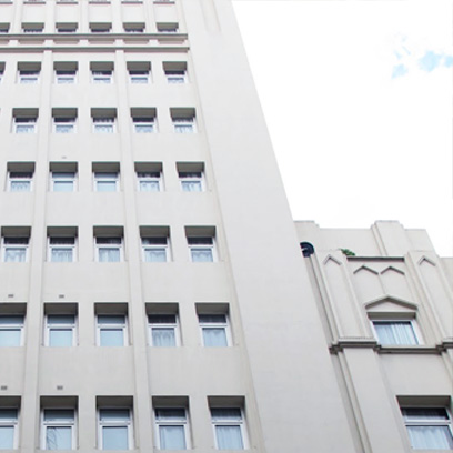 Exteriormente se preservaron las señas de identidad, recuperando los acabados originales de este edificio, inspirado en los rascacielos neoclásicos americanos..