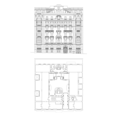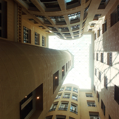 El edificio de uso residencial construido en el primer tercio del siglo XX se transformó íntegramente para el uso de oficinas. Se restauraron las fachadas, las carpinterías y cerrajerías exteriores así como las escaleras principales y la cabina del ascensor original. Se diseñó una bóveda de aristas en vidrio para cubrir el patio interior reconvertido en vestíbulo, así como el artilugio para su limpieza y mantenimiento. Se habilitaron a su vez dos plantas de aparcamiento bajo la estructura original de muros de fábrica de ladrillo.